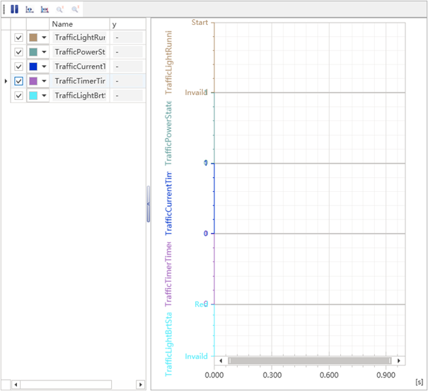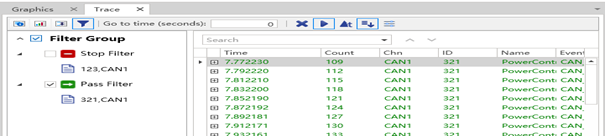 In ETStudio, select Diagram→Timeline Trace in the menu bar to pop up the Timeline Trace window, after the simulation starts, the signal will appear in the right window, at this time, you can drag the message message to be monitored/filtered to the corresponding filter, click Filter Group to complete the filtering of the message message, and then confirm the problem according to the required time point.