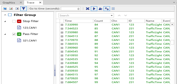 Both the Timeline Trace window and the logging function are very important in the simulation project. The Timeline Trace window provides the ability to view and analyze the data on the bus in real time, and can locate problems more quickly and intuitively during the simulation process, confirm whether the signal transmission and reception at each stage conform to the actual actions of the simulation, and accurately reach the signal and time point through filters. The logging function records the signal data of the entire simulation process, and in the case of a large amount of data or long-term testing, the retained log data can be provided to users for offline data analysis, which is convenient for reproducing problems on the bus and helping to locate the cause of the problem.