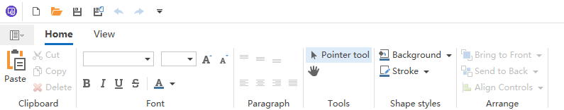The Home ribbon provides some common operations for Dashboard design, such as copying, cutting, and pasting controls, as well as adjusting the size and position of controls, as shown in Figure.