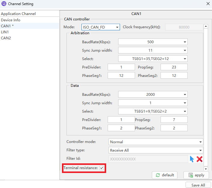 (2) For high-speed CAN, the connection terminal resistor is not checked, as shown in Figure;