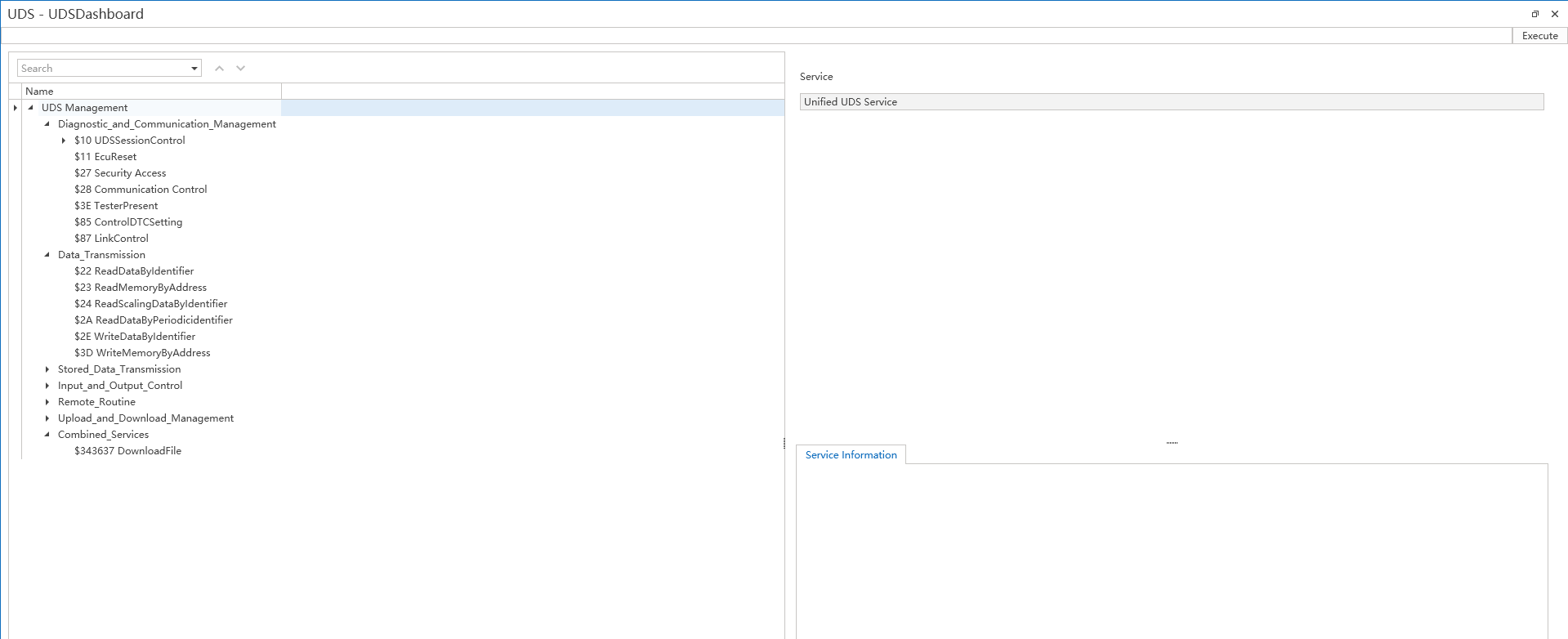 The list of diagnostic requests on the left shows all the diagnostic service requests defined in the current CDD file. Users can trigger a service request by double-clicking on it and view the response results for that request in the Diagnostic Response Results area. If a diagnostic service request involves a write operation, the user can enter the parameter values that need to be written in the diagnostic request settings area, and then execute the request.