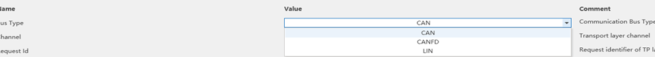 Bus Type: Diagnoses the transport layer type, currently supports CAN/CANFD. Users can select from the drop-down list as shown in the image below: