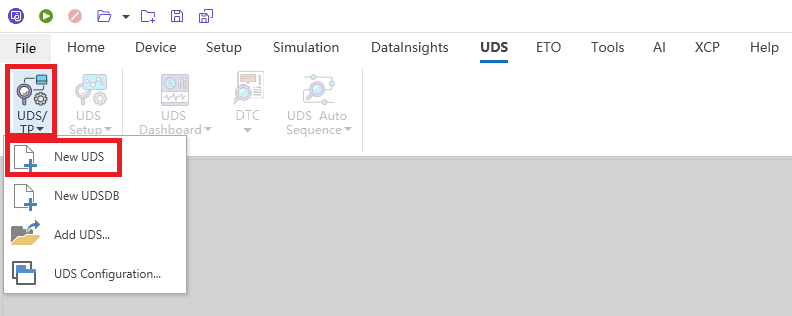 - Specifically for switching the current session state of the ECU. Click on menu UDS --> UDS Setup.
