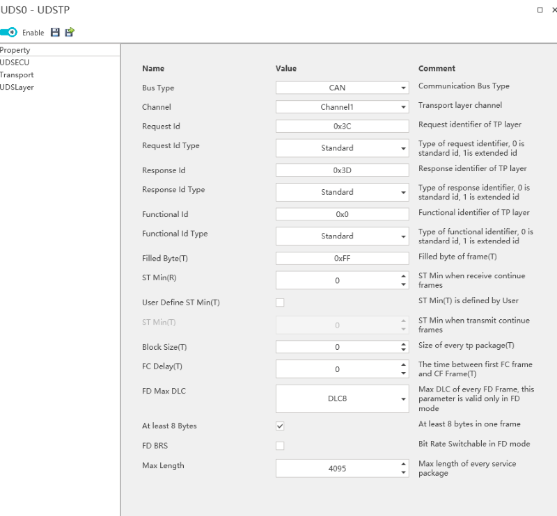 ST min: The shortest reception interval. When ETStudio's diagnostic module acts as the receiver, it supports receiving consecutive frame messages at the minimum interval between diagnostic frames. This parameter is the response customer to the diagnosis. Setting it to 0 means that it supports receiving at the shortest possible interval.