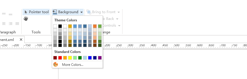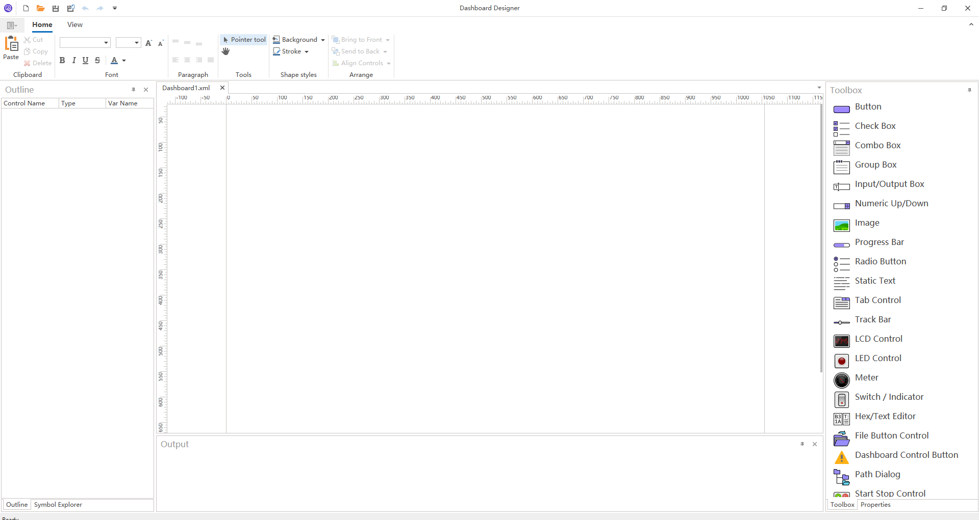 Home 功能区提供常用的编辑操作,例如复制、剪切、粘贴控件,以及调整控件的大小与位置等。