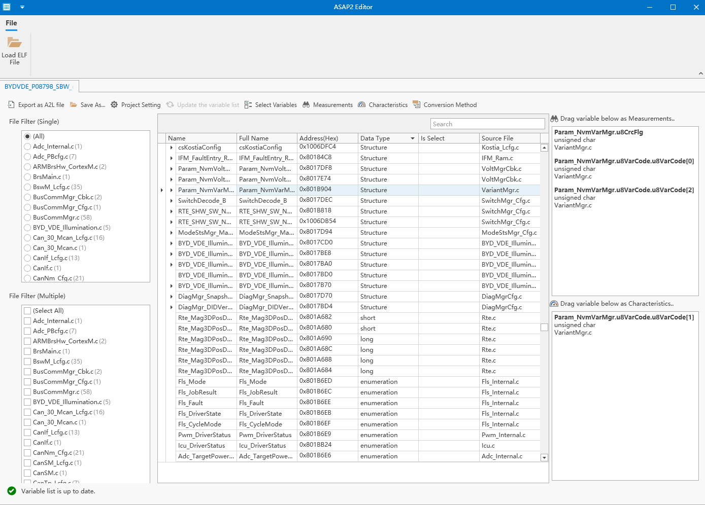 ASAP2 Editor 是一个将 ELF(Executable and Linkable Format)文件转换为 A2L(ASAP2 标准格式)文件的工具。它支持通过多种转换方法(线性、分数/有理数、代数表达式、查找表、符号查找表等)从 ELF 文件中提取观测量和标定量。该工具允许用户为每个对象灵活编辑转换方法,可选择独立或通用的转换方式。此外,工具支持输出最新的 A2L v1.60 版本,提供更强的公式能力和更好的兼容性。